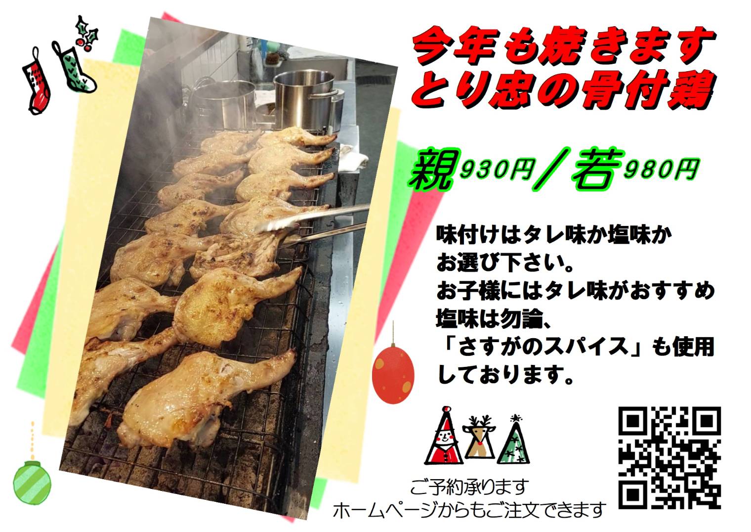 クリスマスの「骨付き鶏」予約受付中!