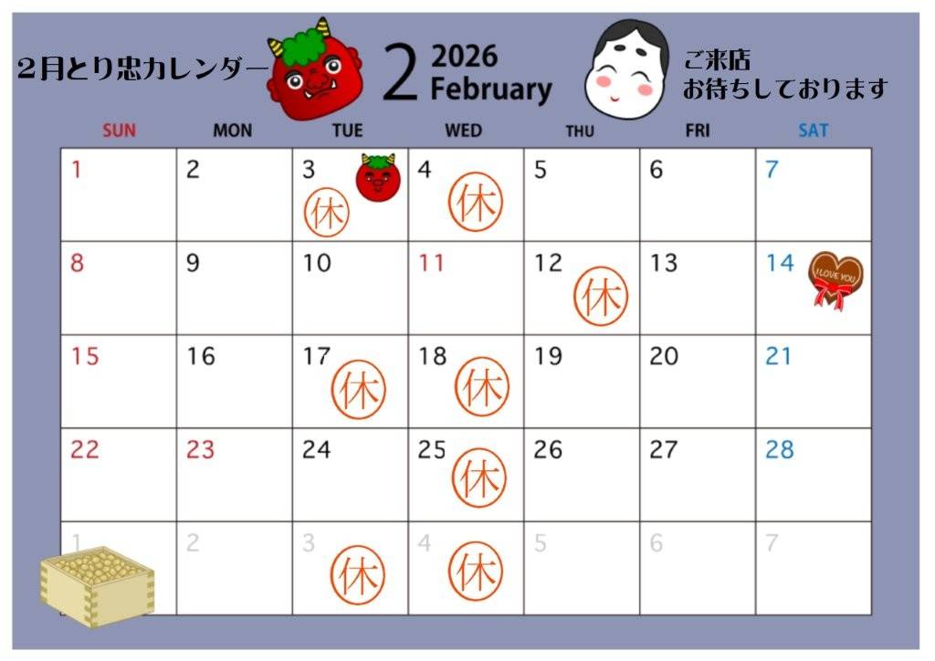 2月の営業とお休みのお知らせ